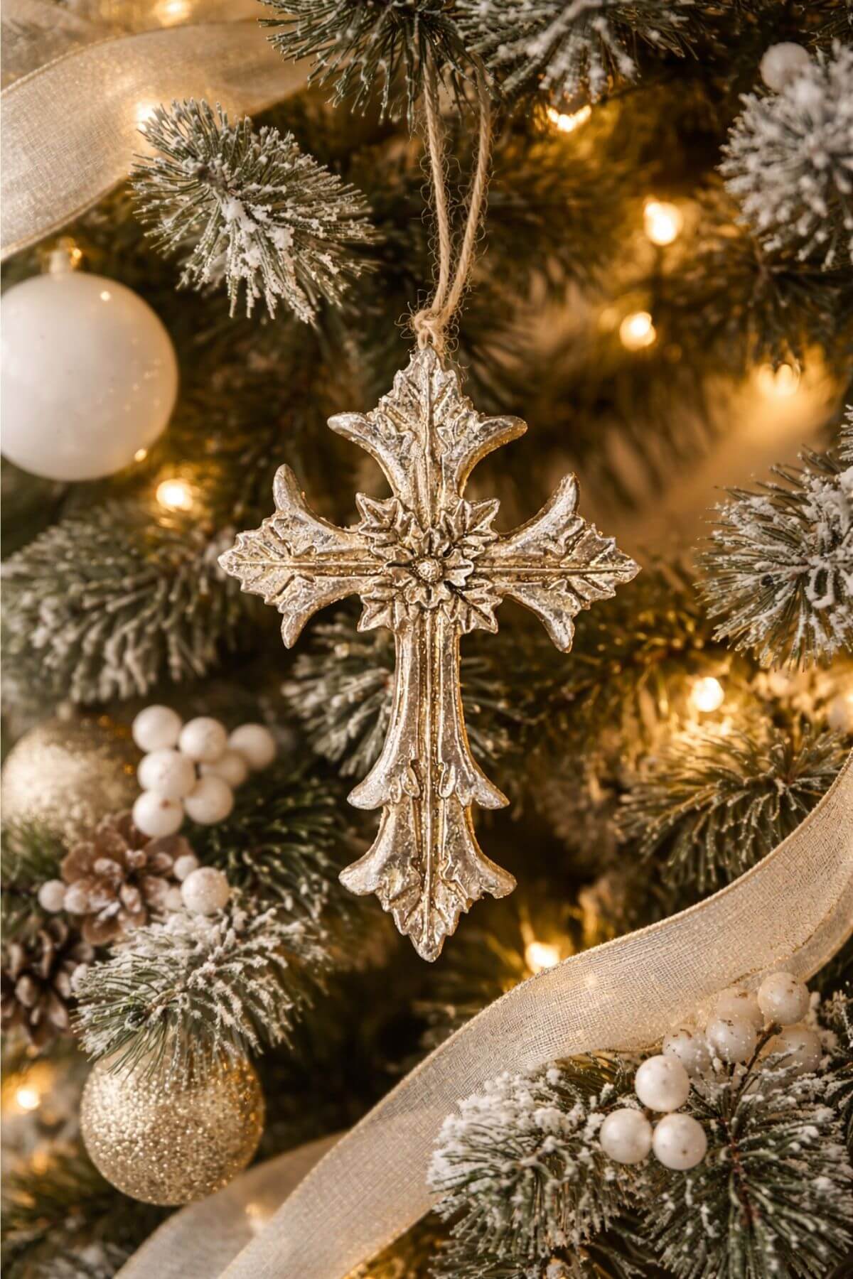 Antik ezüst karácsonyfadísz kereszt