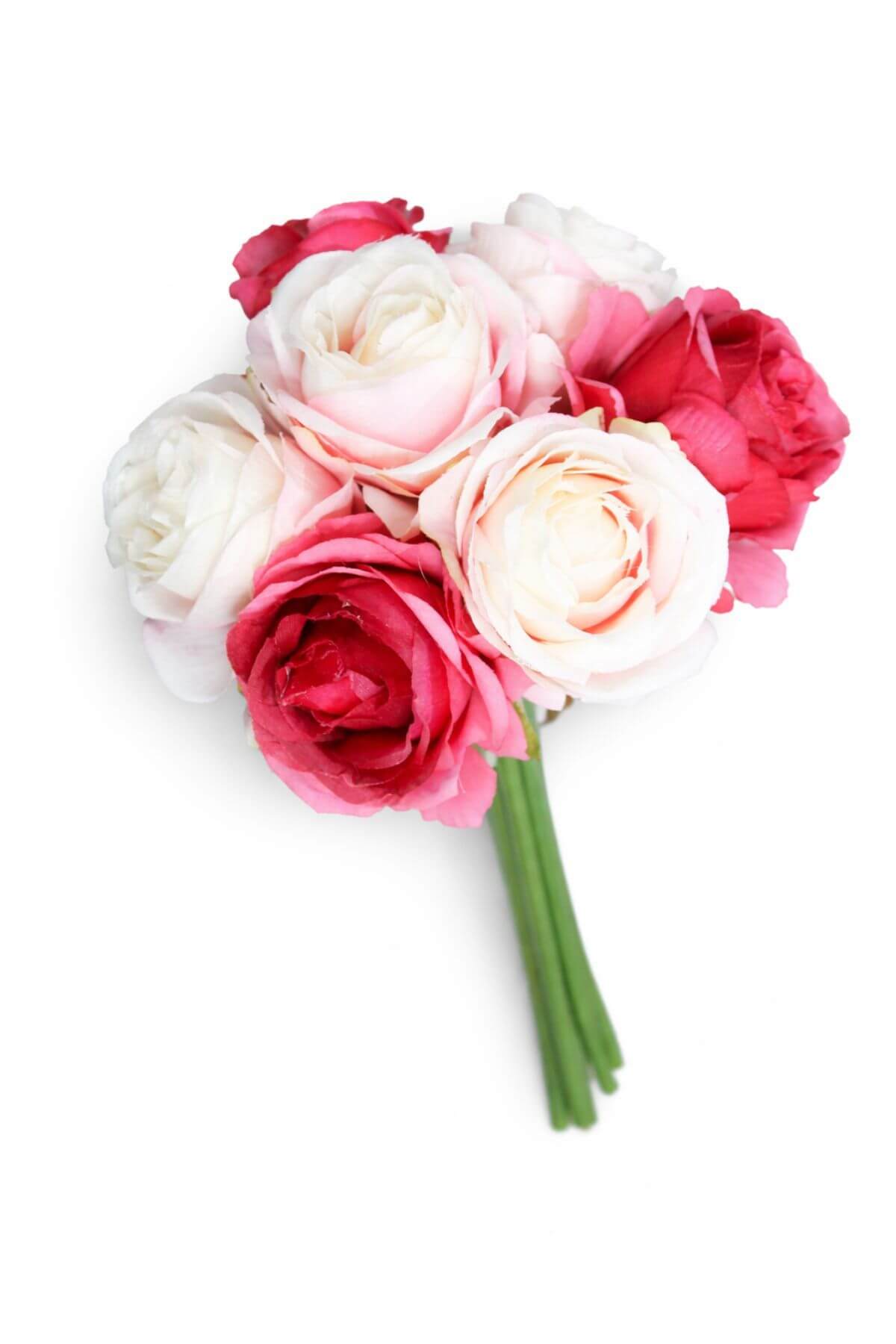 Fehér-rózsaszín művirág csokor - 7 rózsából 24cm