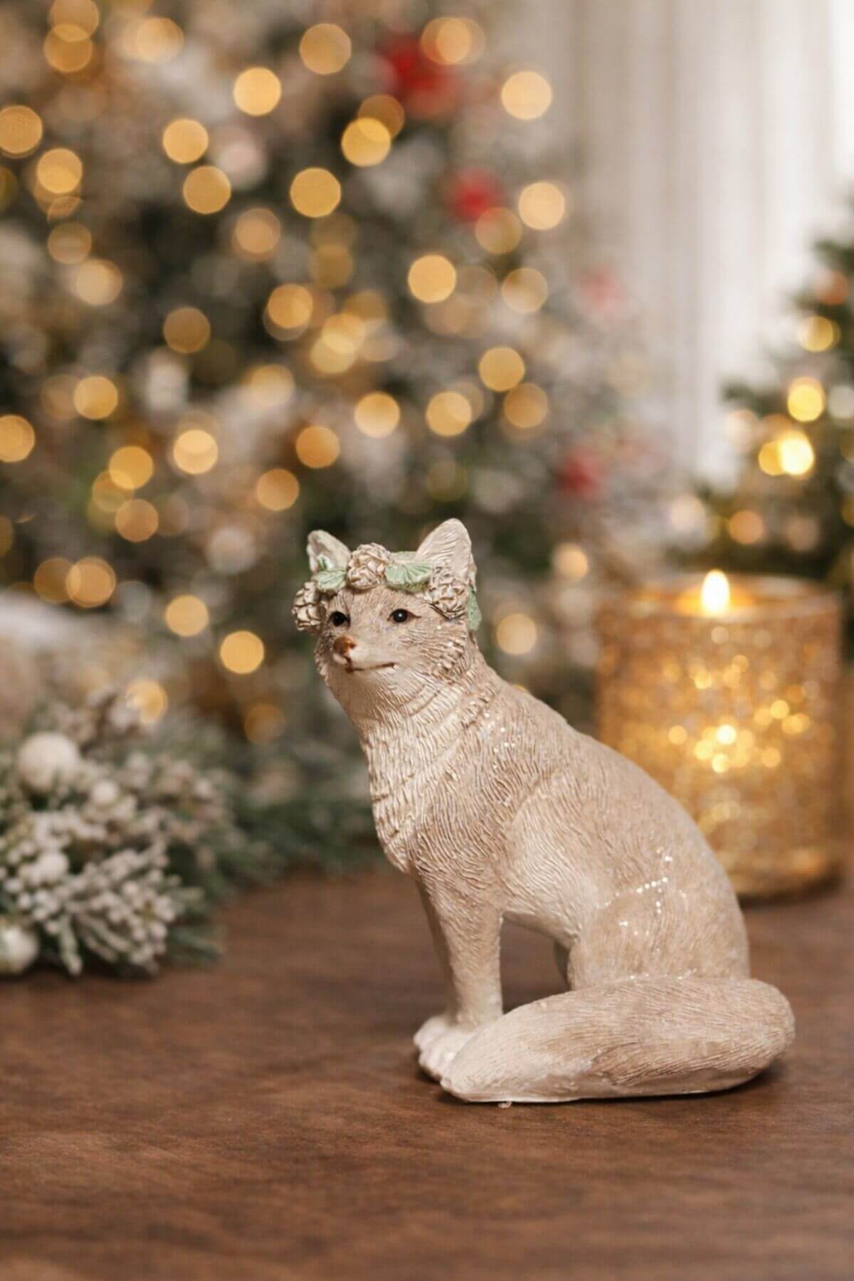 Jeges-szürke karácsonyi róka figura 9cm