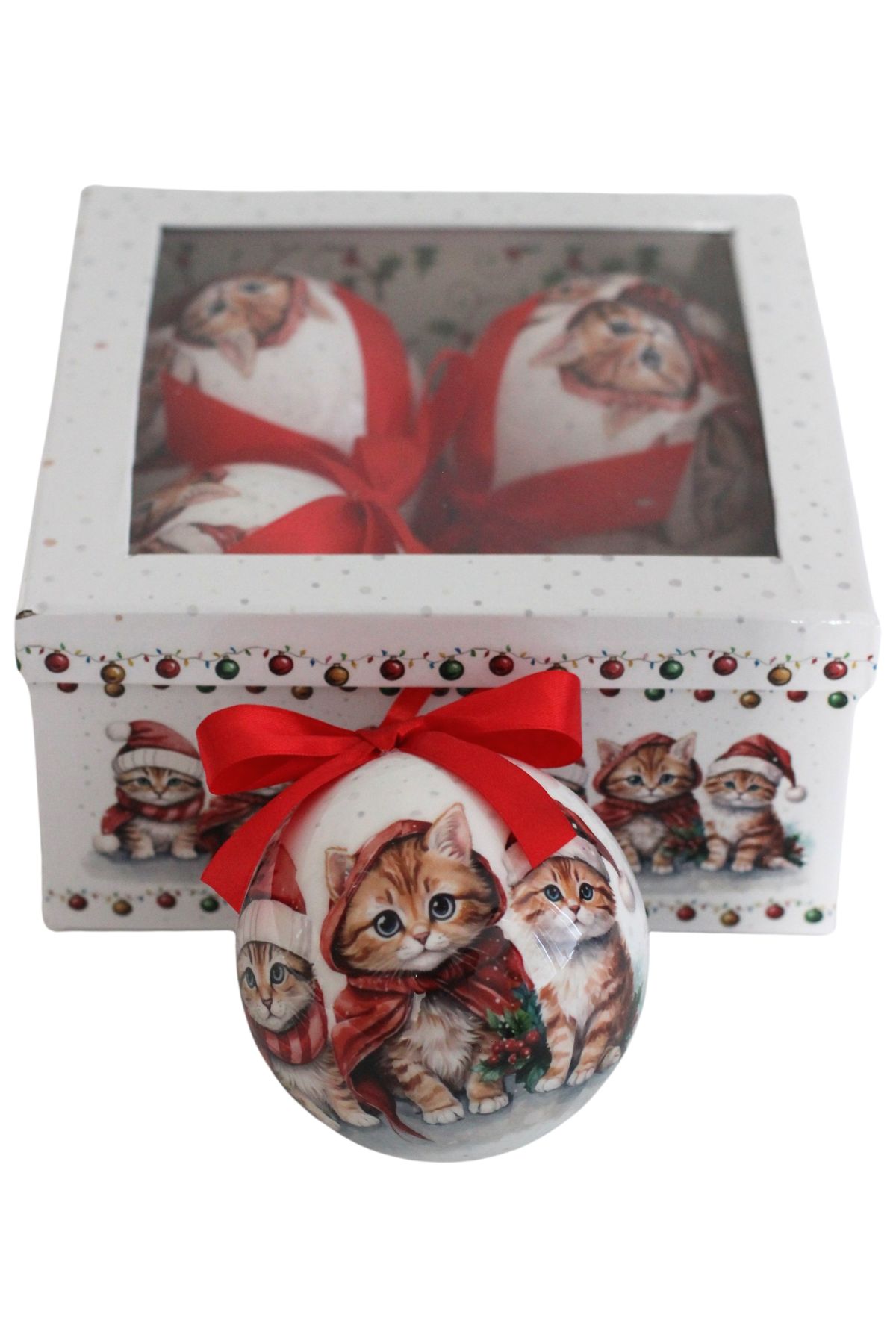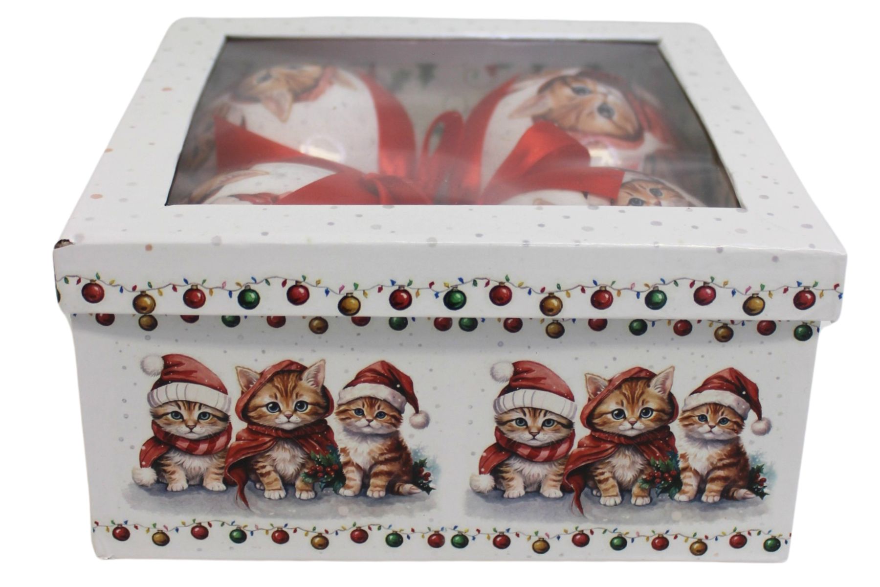 Mesés karácsonyi gömbök gyönyörű díszdobozban. A készlet 4 gömböt tartalmaz, amelyek a díszes masninak köszönhetően könnyen felakaszthatók a fára. A karácsonyi motívum megfelelő karácsonyi hangulatot varázsol. Ajándéknak is alkalmasak