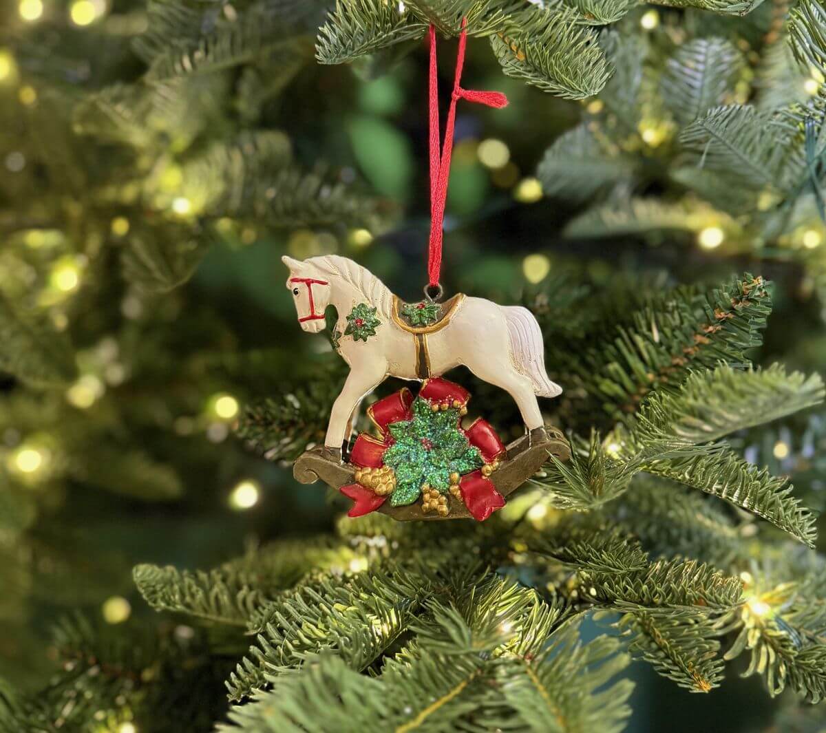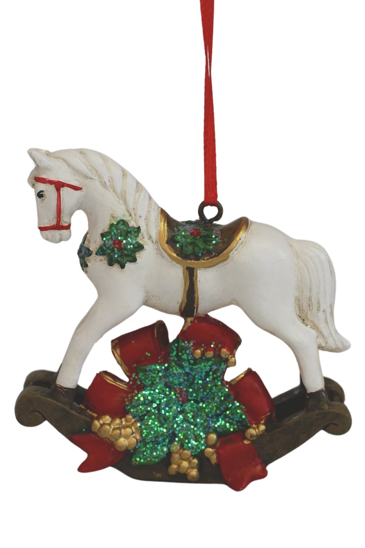 Adj hagyományos ünnepi bájt karácsonyfádnak ezzel a hintaló alakú függődísszel. A részletesen kidolgozott dísz gyönyörű kiegészítője karácsonyfájának, koszorújának vagy füzérének.