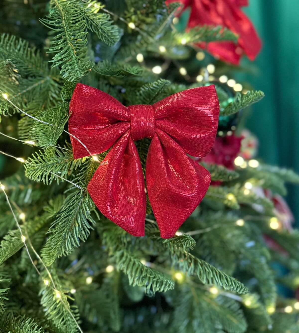 A piros karácsonyi masni alkalmas ajándék dísznek és a karácsonyi dekoráció részeként is.