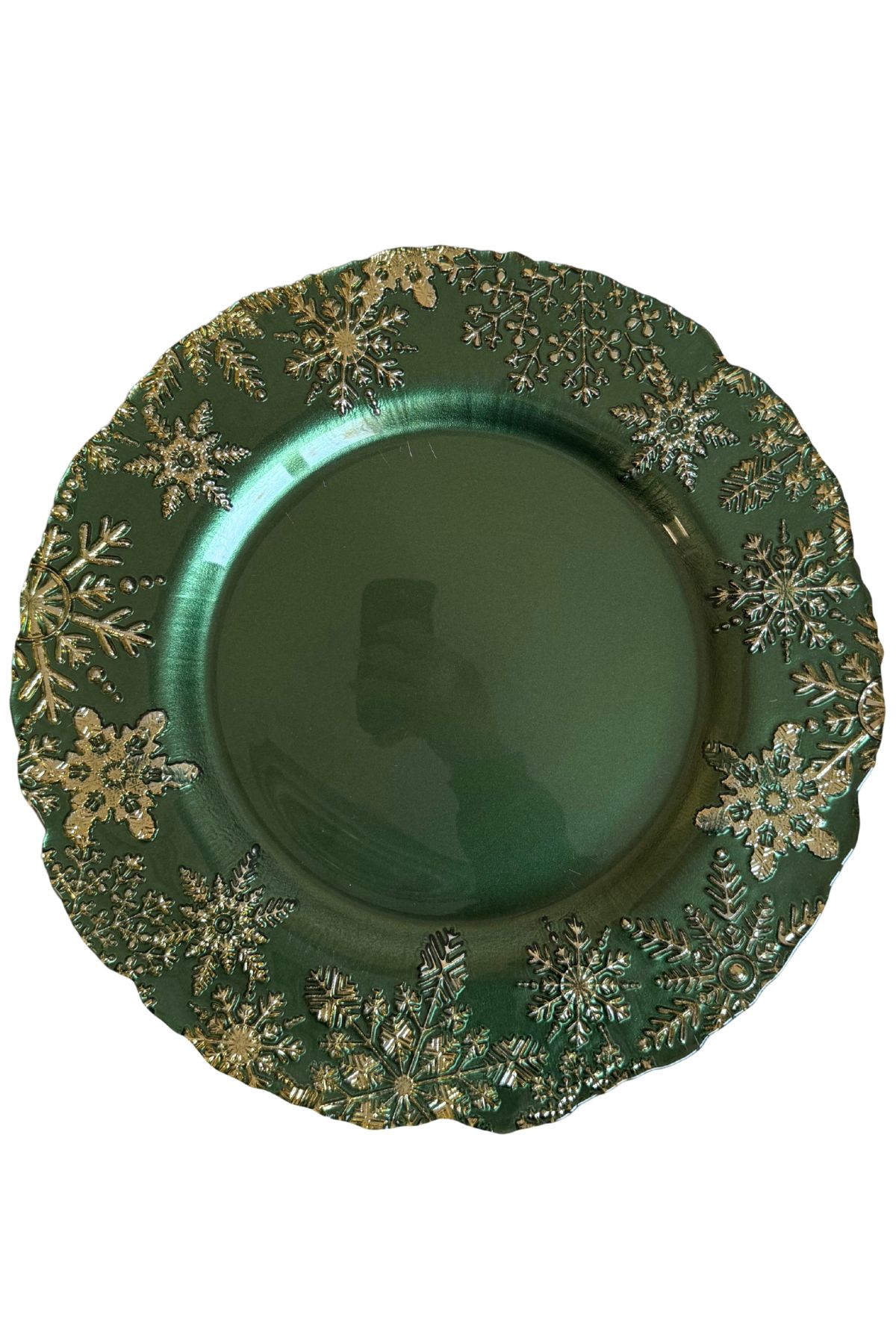 Zöld és arany üveg karácsonyi tányér 33cm